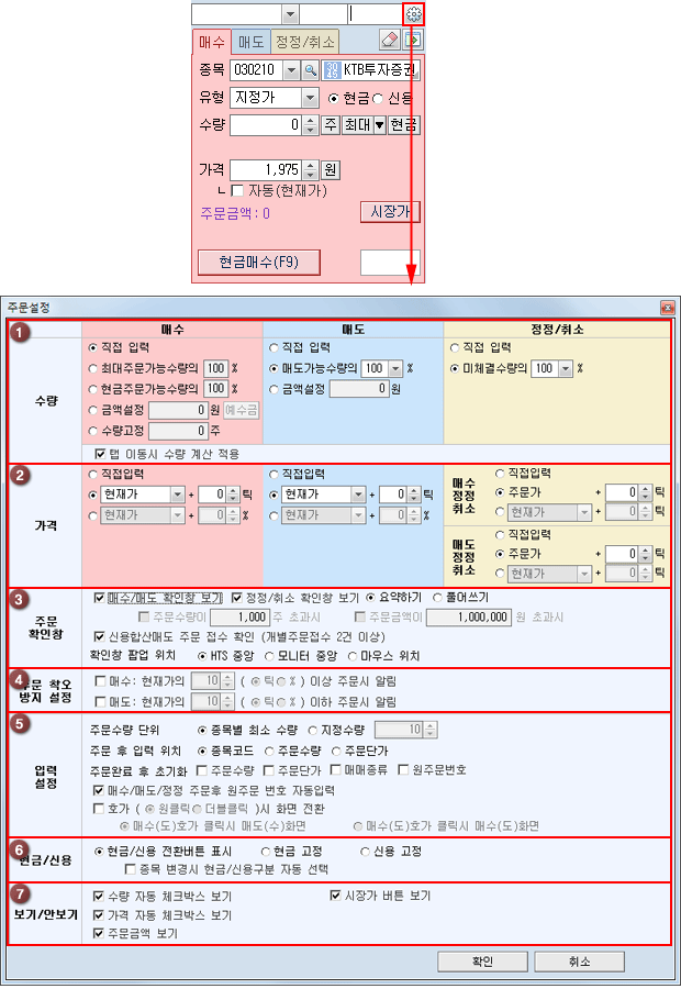 ¸Å¼ö/¸Åµµ È®ÀÎâ º¸±â, Á¤Á¤/Ãë¼Ò È®ÀÎâ º¸±â : ¸Å¼ö/¸Åµµ ÁÖ¹®, Á¤Á¤/Ãë¼Ò ÁÖ¹® ½Ã ÁÖ¹® È®ÀÎâÀÇ ÆË¾÷ ¿©ºÎ¸¦ ¼³Á¤ÇÕ´Ï´Ù.¸Å¼ö/¸Åµµ ÁÖ¹®À» ¼±ÅÃÇϽаæ¿ì ÁÖ¹®¼ö·®ÀÌ()ÁÖÃʰú/ÁÖ¹®±Ý¾×ÀÌ()¿øÃʰú½Ã¸¦ ¼³Á¤ÇÏ½Ç ¼ö ÀÖ½À´Ï´Ù.