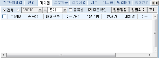 ÀÌ Áß Á¤Á¤À̳ª Ãë¼ÒÁÖ¹®À» ½ÇÇàÇÒ ¹Ìü°á ³»¿ªÀ» ´õºí Ŭ¸¯Çϸé Á¾¸ñÄÚµå ¹× ¼ö·®, °¡°Ý µîÀÌ ÀÚµ¿À¸·Î ÀԷµ˴ϴÙ.