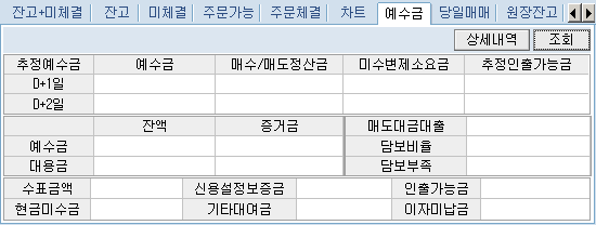 ¿¹¼ö±Ý : °èÁÂÀÇ ¿¹¼ö±Ý, ´ë¿ë±Ý ÇöȲ ¹× ¸Å¸Å ÈÄ D+1ÀÏ/ D+2ÀÏÀÇ ¿¹¼ö±Ý ÃßÁ¤Ä¡ µîÀ» Á¶È¸ÇÒ ¼ö ÀÖ½À´Ï´Ù.