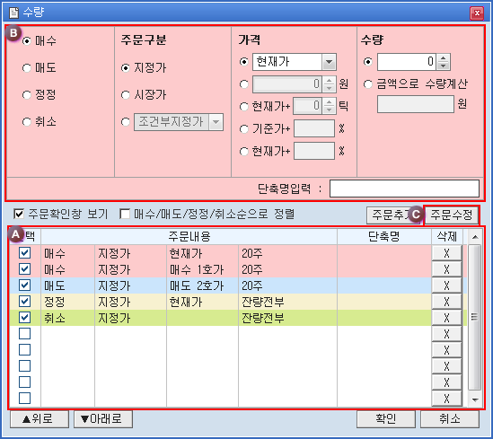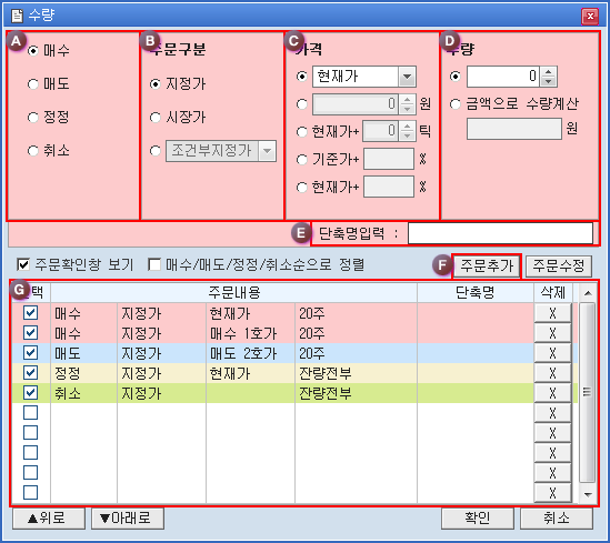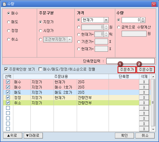 ÁÖ¹®Á¾·ù, ÁÖ¹®±¸ºÐ, ÁÖ¹®°¡°Ý, ÁÖ¹®¼ö·® ¹× ´ÜÃà¸í Áß ¼öÁ¤ÇÒ ³»¿ë¿¡ »õ·Î¿î ¼³Á¤³»¿ëÀ» ÀÔ·ÂÇÕ´Ï´Ù.