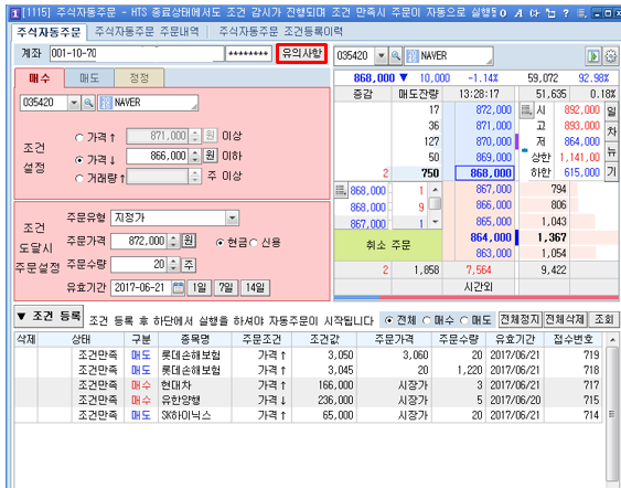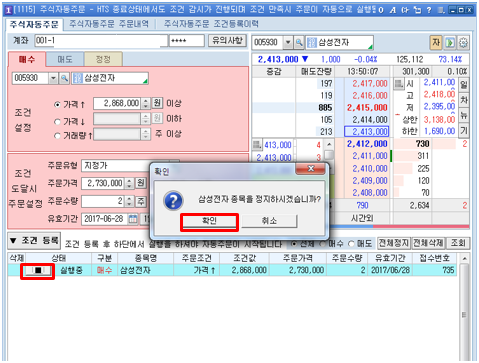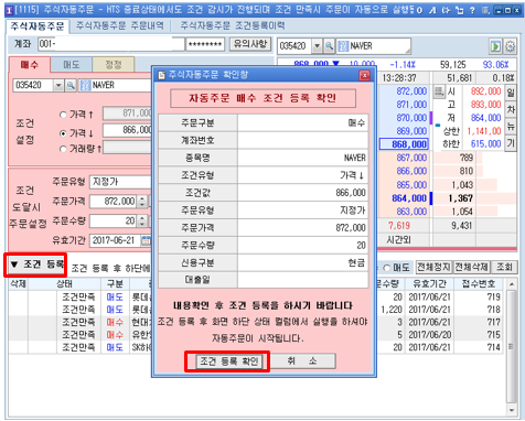 °¡°Ý À̳ª °Å·¡·® Á¶°Ç ¼³Á¤Çϰí ÁÖ¹®À¯Çü, ÁÖ¹®°¡°Ý, ÁÖ¹®¼ö·® , À¯È¿±â°£ µî ÁÖ¹®À» ¼³Á¤ Çϰí Á¶°Ç µî·Ï ¹öưÀ» ´©¸£¸é Á¶°Çµî·ÏÈ®ÀΠâ¿¡¼ È®ÀÎÇÕ´Ï´Ù