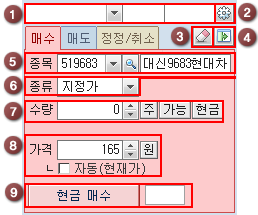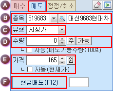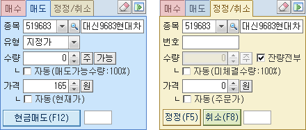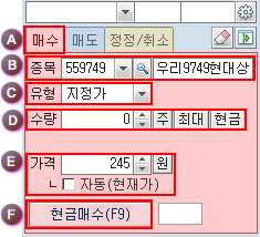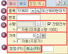 ¹öưÀ» Ŭ¸¯ÇϽðųª, Űº¸µåÀÇ ´ÜÃàŰ F9 ¸¦ ´©¸£½Ã¸é ¸Å¼ö ÁÖ¹®ÀÌ ½ÇÇàµË´Ï´Ù.