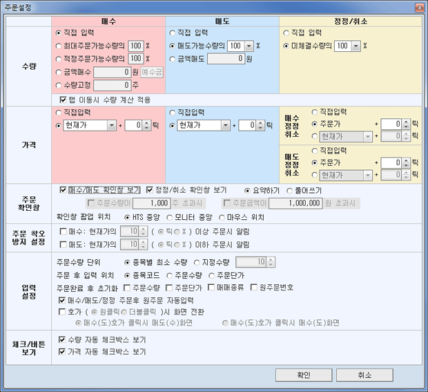 ÁÖ¹®¼ö·®À» ÀÔ·ÂÇÕ´Ï´Ù. 'ÀÚµ¿'¶õÀ» vüũÇÏ¸é ¸Åµµ¼ö·®À» ½Ç½Ã°£À¸·Î ÀÚµ¿°è»êÀº ¾ÈµÇ¸ç, Á¾¸ñº¯°æ½Ã³ª ÁÖ¹®Ã¢ ÅǺ¯°æ½Ã °è»êÀÌ ÀÚµ¿À¸·Î Àû¿ëµË´Ï´Ù.