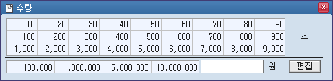 ¹öưÀ» Ŭ¸¯ÇÏ½Ã¸é ¹Ì¸® ¼³Á¤ µÈ ¹öư Ŭ¸¯¸¸À¸·Î ¼ö·®À» ÀÔ·ÂÇÏ½Ç ¼ö ÀÖ½À´Ï´Ù.