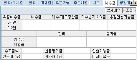 ¿¹¼ö±Ý: ¿¹¼ö±Ý ¹× ¸Å¼ö/¸ÅµµÁ¤»ê±Ý/ ÀÎÃâ °¡´É ±Ý¾× µîÀ» Á¶È¸ÇÏ½Ç ¼ö ÀÖ½À´Ï´Ù.