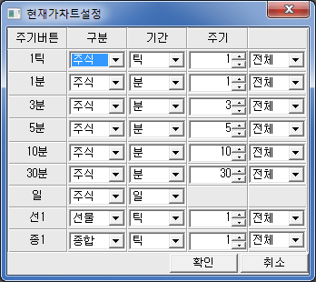 를 클릭하면, 현재가차트설정창이 팝업 됩니다.