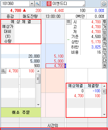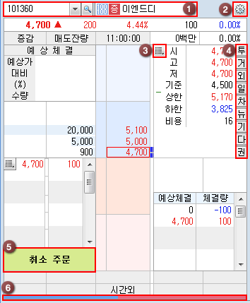 취소주문 영역 보기 : 호가창 하단에 취소주문 영역이 표시됩니다.