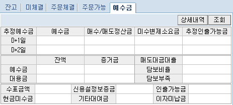 예수금 : 계좌의 예수금, 대용금 현황 및 매매 후 D+1일/ D+2일의 예수금 추정치 등을 조회할 수 있습니다.