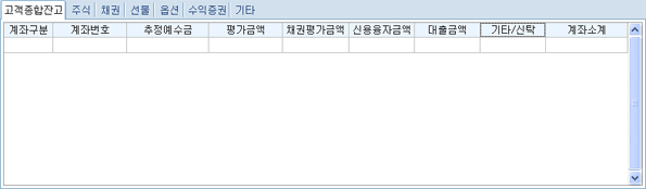 °í°´ Á¾ÇÕ Àܰí : ÃßÁ¤¿¹¼ö±Ý, Æò°¡±Ý¾×, ä±ÇÆò°¡±Ý¾×, ½Å¿ë¿ëÀڱݾ×, ´ëÃâ±Ý¾× µîÀ» Á¶È¸ÇÏ½Ç ¼ö ÀÖ½À´Ï´Ù.