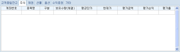 ä±Ç Àܰí : º¸À¯¼ö·®, Æò±Õ´Ü°¡, ÇöÀç°¡, Æò°¡±Ý¾×, Æò°¡¼ÕÀÍ µîÀ» Á¶È¸ÇÏ½Ç ¼ö ÀÖ½À´Ï´Ù.
