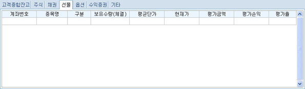 ¼±¹° Àܰí : º¸À¯¼ö·®, Æò±Õ´Ü°¡, ÇöÀç°¡, Æò°¡±Ý¾×, Æò°¡¼ÕÀÍ µîÀ» Á¶È¸ÇÏ½Ç ¼ö ÀÖ½À´Ï´Ù.