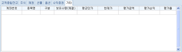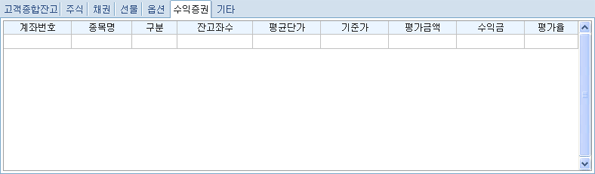 ¼öÀÍÁõ±Ç : ÀܰíÁ¼ö, Æò±Õ´Ü°¡, ±âÁذ¡, Æò°¡±Ý¾×, ¼öÀͱÝ, Æò°¡À² µîÀ» Á¶È¸ÇÏ½Ç ¼ö ÀÖ½À´Ï´Ù.