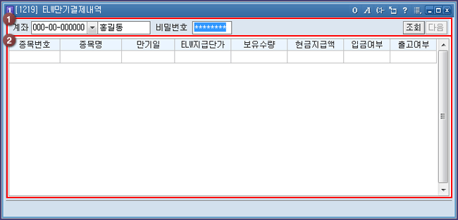 선택한 계좌의 종목별 ELW만기결제내역을 상세하게 확인할 수 있습니다.