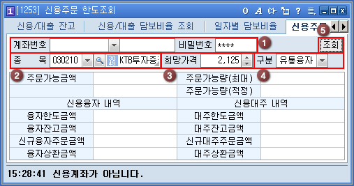 ½Å¿ëÁÖ¹® Çѵµ¸¦ Á¶È¸ÇÒ °èÁ¹øÈ£ ¹× ºñ¹Ð¹øÈ£¸¦ ÀÔ·ÂÇÕ´Ï´Ù.