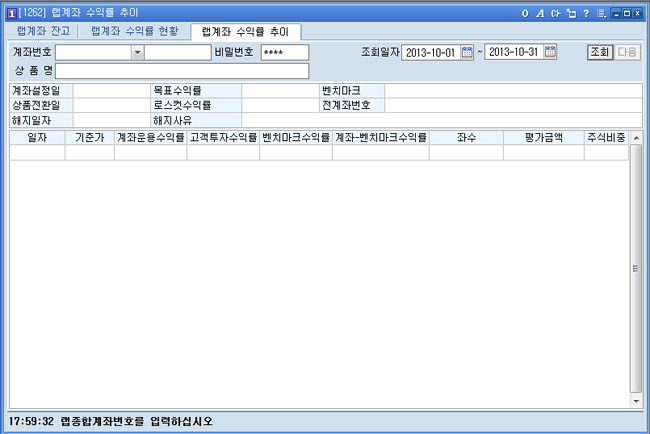 기간 설정하여 해당 기간에 대한 수익률을 리스트형식으로 보여주는 화면입니다.