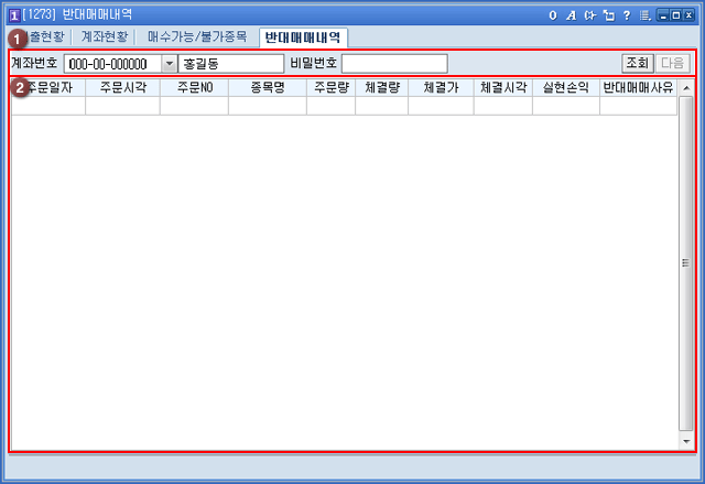 선택한 계좌의 반대매매내역을 상세하게 조회할 수 있습니다.