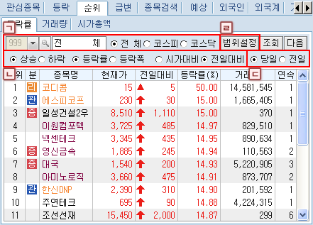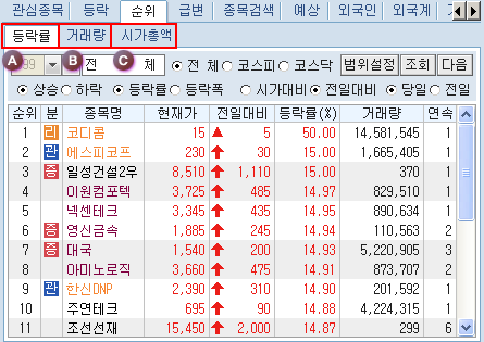 '»ó½Â/Ç϶ô/µî¶ôÀ²/µî¶ôÆø' ¶Ç´Â '½Ã°¡´ëºñ/ÀüÀÏ´ëºñ' Áß Á¶È¸ÇÒ ±¸ºÐÀ» ¼±ÅÃÇÕ´Ï´Ù.