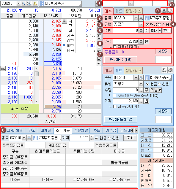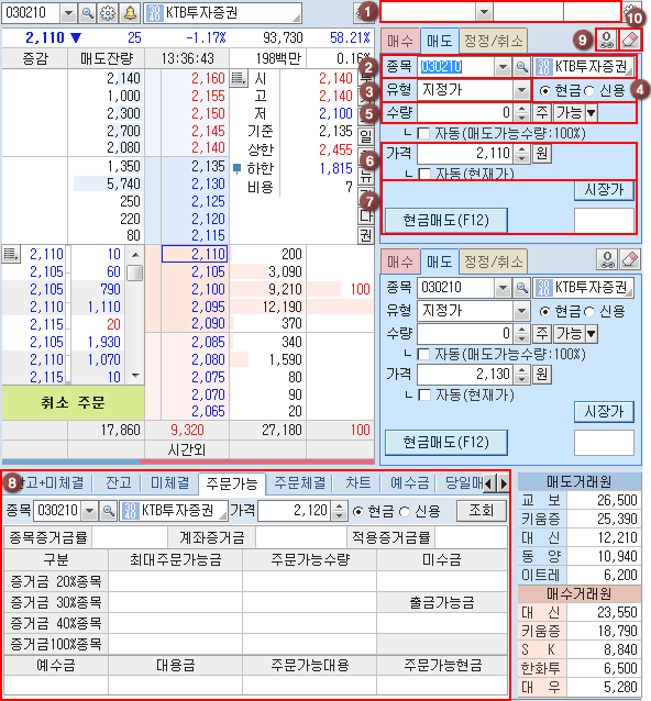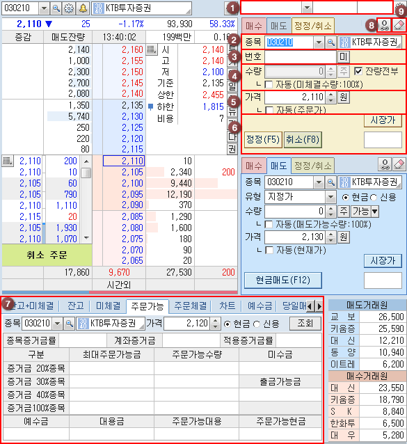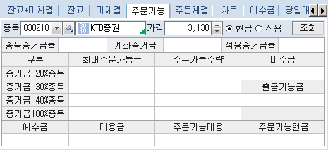 '°èÁÂÁ¤º¸ ¿µ¿ª'¿¡¼ 'ÁÖ¹®°¡´É' ÅÇÀ» ¼±ÅÃÇϸé ÇØ´çÁ¾¸ñÀÇ ÁÖ¹®°¡´É ±Ý¾×À» Áõ°Å±Ýº°·Î Á¶È¸ÇÒ ¼ö ÀÖ½À´Ï´Ù. ¶ÇÇÑ ÁÖ¹®ÇÒ Á¾¸ñÄڵ带 ÀÔ·ÂÇÑ ÈÄ ' '°¡°Ý'¶õ¿¡ ¸Å¼öÇÒ ÁÖ¹®°¡°ÝÀ» ÀÔ·ÂÇϰí 'Á¶È¸'¹öưÀ» Ŭ¸¯Çϸé ÁÖ¹®°¡´É±Ý¾×°ú À̸¦ ±Ù°Å·Î »êÃâµÈ ¸Å¼ö°¡´É¼ö·®À» Á¶È¸ÇÒ ¼ö ÀÖ½À´Ï´Ù.
