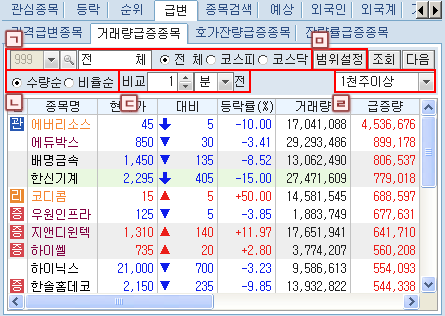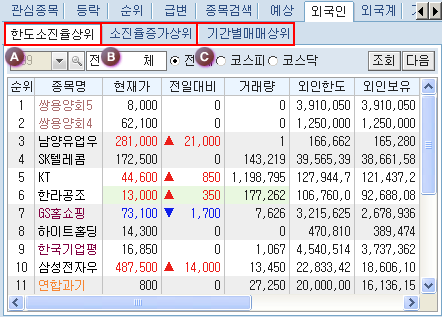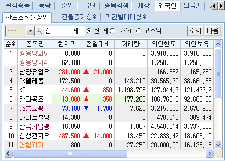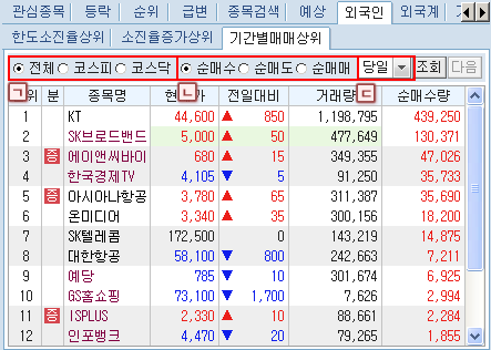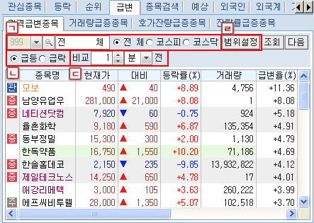 ¹Ì¸® µî·ÏÇÑ °ü½ÉÁ¾¸ñ ¹× µî¶ô, ¼øÀ§, ±Þº¯, Á¾¸ñ°Ë»ö, ¿¹»ó, ¿Ü±¹ÀÎ, ¿Ü±¹°è, °Å·¡¿ø¼ø°£, ¾÷Á¾, Å׸¶º°' µîÀÇ °¢Á¾ ¼øÀ§¿Í ½Ã¼¼Á¶È¸°¡ °¡´ÉÇÕ´Ï´Ù.