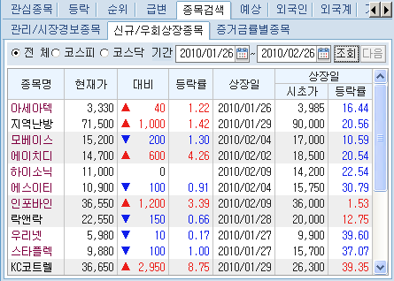 ÁöÁ¤ÇÑ ±â°£ÀÇ ÄÚ½ºÇÇ, ÄÚ½º´Ú ½ÃÀåÀÇ ½Å±Ô/¿ìȸ»óÀåÁ¾¸ñ Á¾¸ñ ¸®½ºÆ®¿Í ½Ã¼¼ÇöȲÀ» Á¶È¸ÇÒ ¼ö ÀÖ½À´Ï´Ù.