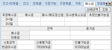 ¿¹¼ö±Ý : °èÁÂÀÇ ¿¹¼ö±Ý, ´ë¿ë±Ý ÇöȲ ¹× ¸Å¸Å ÈÄ D+1ÀÏ/ D+2ÀÏÀÇ ¿¹¼ö±Ý ÃßÁ¤Ä¡ µîÀ» Á¶È¸ÇÒ ¼ö ÀÖ½À´Ï´Ù.