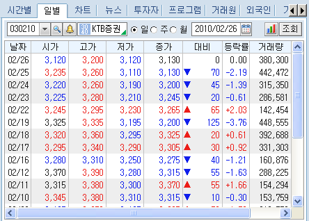 ÀϺ° : Á¾¸ñÀÇ ÀÏÀÚº° ÁÖ°¡ÃßÀÌ ÇöȲÀ» Á¶È¸ÇÒ ¼ö ÀÖ½À´Ï´Ù.