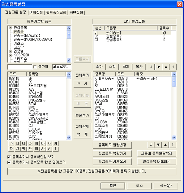 ¸¦ Ŭ¸¯ÇÏ¸é °ü½É±×·ì ¸®½ºÆ®¸¦ Á¶È¸ÇÒ ¼ö ÀÖÀ¸¸ç, °ü½É±×·ìÀ» ¼±ÅÃÇÏ¸é °ü½ÉÁ¾¸ñ ¸®½ºÆ® ¹× ½Ã¼¼ÇöȲÀ» Á¶È¸ÇÒ ¼ö ÀÖ½À´Ï´Ù.