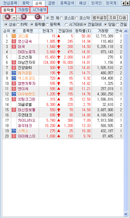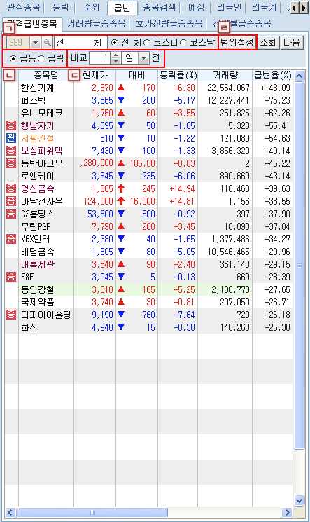 '»ó½Â/Ç϶ô/µî¶ôÀ²/µî¶ôÆø' ¶Ç´Â '½Ã°¡´ëºñ/ÀüÀÏ´ëºñ' Áß Á¶È¸ÇÒ ±¸ºÐÀ» ¼±ÅÃÇÕ´Ï´Ù.