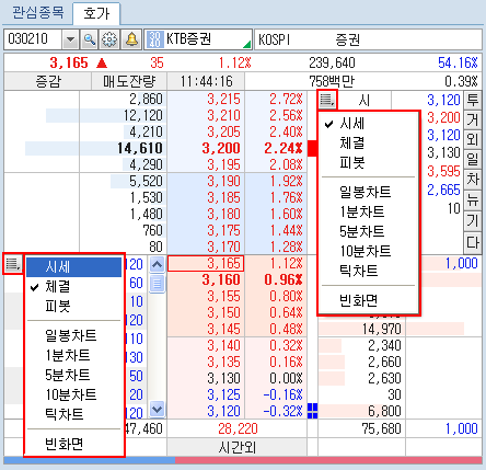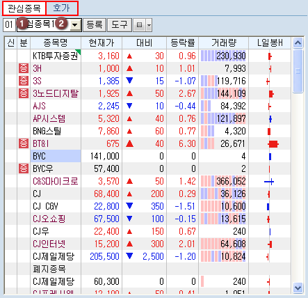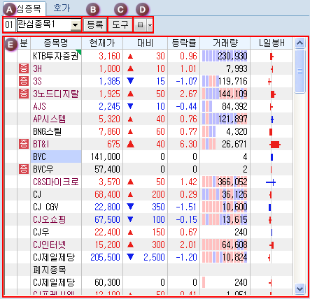 ¹öưÀ» Ŭ¸¯Çϸé Á¤±Ô½ÃÀå¿¡¼ÀÇ ÇöÀç ½Ã¼¼»óÅÂ/¿¹»óü°á»óÅÂ/½Ã°£¿Ü»óÅÂ/½Ã°£¿Ü+¿¹»óü°á»óÅ µîÀÇ ½Ã¼¼ Á¶È¸ Á¾·ù ¼±Åðú °ü½É±×·ìÀÇ Á¶È¸/ÀúÀå ¹× ±×·ì À̸§ º¯°æ µîÀ» ¼±ÅÃÇÒ ¼ö ÀÖ´Â µµ±¸¹öưÀÔ´Ï´Ù.