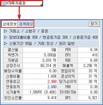 Á¾¸ñ¸íÀÇ ÁÂÃø¿¡´Â Çö±ÝÁõ°Å±ÝÀ², ½Å¿ëÁõ°Å±ÝÀ²ÀÌ Ç¥½Ã µÇ¸ç, Á¾¸ñ¸íÀ» Ŭ¸¯Çϸé Á¾¸ñ »ó¼¼Á¤º¸ Á¶È¸ ¹× Á¾¸ñ¿¡ ´ëÇÑ °£´ÜÇÑ ¸Þ¸ð ÀÔ·ÂÀÌ °¡´ÉÇÕ´Ï´Ù.