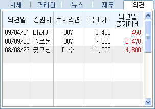 ÀÇ°ß : Á¾¸ñ¿¡ ´ëÇÑ Áõ±Ç»çÀÇ ÅõÀÚ Àǰß, ¸ñÇ¥°¡, ÀǰßÀÏ Á¾°¡´ëºñ ÇöȲÀ» Á¶È¸ÇÒ ¼ö ÀÖ½À´Ï´Ù.