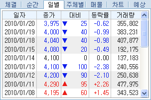 ÀϺ° : Á¾¸ñÀÇ ÀÏÀÚº° ÁÖ°¡ ÃßÀÌÇöȲÀ» Á¶È¸ÇÒ ¼ö ÀÖ½À´Ï´Ù.