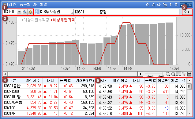 ¡®KOSPI Á¾ÇÕ, KOPSI200, KOSPI¹è´ç, KOSDAQ Á¾ÇÕ, KRX100, KOSTAR¡¯ µîÀÇ ¿¹»óÁö¼öÇöȲÀ» Á¶È¸ÇÒ ¼ö ÀÖ½À´Ï´Ù.