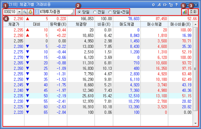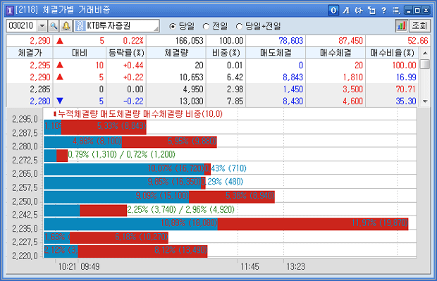 Á¶È¸ Á¾¸ñÀÇ Àüü ü°á°¡º° °Å·¡ºñÁß ÇöȲÀ» ½Ç½Ã°£º°·Î Á¶È¸ÇÒ ¼ö ÀÖ½À´Ï´Ù.