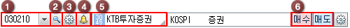 조회할 종목 선택 및 각 버튼을 통하여 해당 종목에 대한 매도/매수 주문 및 잔고, 체결, 차트 화면을 조회할 수 있습니다.