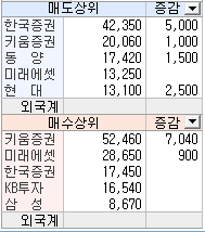 조회종목의 매도상위, 매수상위 거래원 정보가 제공됩니다.
