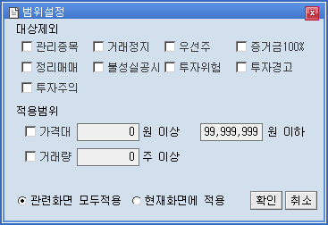 ¹öưÀ» Ŭ¸¯ÇÏ¸é ¡®¹üÀ§¼³Á¤¡¯ ȸéÀÌ ÆË¾÷ µÇ¸ç, Á¦¿Ü´ë»ó°ú Àû¿ë¹üÀ§¸¦ ¼³Á¤ÇÒ ¼ö
