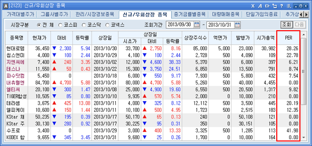 Àü³âµµ¼øÀÌÀÍÀÌ ÀûÀÚÀ̰ųª ÁÖ°¡¿¡ ºñÇØ EPS°ªÀÌ ±ØÈ÷ ÀÛÀº °æ¿ì´Â PER°ªÀÌ 0.00 À¸·Î Ç¥½ÃµË´Ï´Ù.
