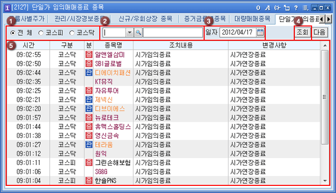 ¼±ÅÃÇÑ ½ÃÀåÀÇ ´ÜÀϰ¡ ÀÓÀǸŸŠÁ¾·á Á¾¸ñ ¸®½ºÆ®¿Í Á¶Ä¡³»¿ë, º¯°æ»çÇ× µîÀ» Á¶È¸ÇÒ ¼ö ÀÖ½À´Ï´Ù.