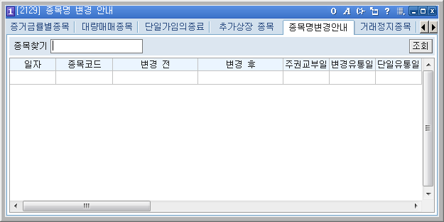 Á¶È¸ Á¾¸ñÀÇ Á¾¸ñ¸í º¯°æÀü/ÈÄÀÇ ÇöȲÀ» Á¶È¸ÇÒ ¼ö Àִ ȸéÀÔ´Ï´Ù.