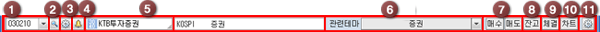 종목의 10단계 호가 및 매수/매도 잔량현황 및 각 연결버튼을 통하여 정보를 조회할 수 있으며, 종목 투자에 도움을 주는 영역입니다.