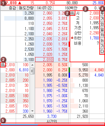 호가등락률 보기 : 호가창의 등락률 현황이 표시됩니다.