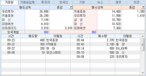 거래원/거래원입체/투자자/외국인/기관/뉴스/재무/의견