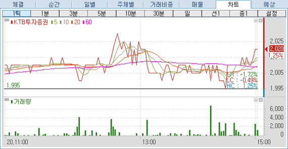 차트 : 조회종목의 ‘틱/분/일’ 차트를 조회할 수 있습니다.
