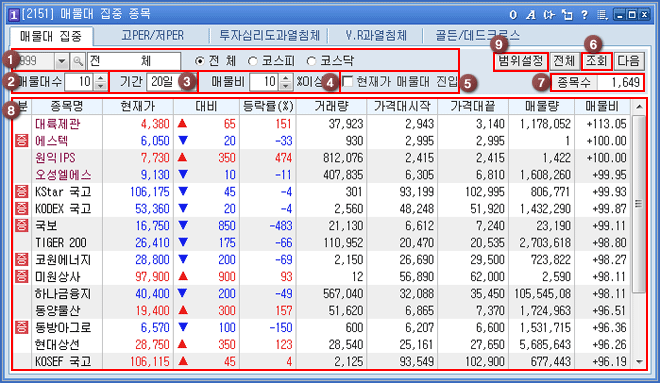 ¹öưÀ» Ŭ¸¯ÇÏ¸é ¡®¹üÀ§¼³Á¤¡¯ ȸéÀÌ ÆË¾÷ µÇ¸ç, ´ë»óÁ¦¿Ü Ç׸ñ°ú °¡°Ý´ë¿Í °Å·¡·®ÀÇ Àû¿ë¹üÀ§¸¦ ¼³Á¤ÇÒ ¼ö ÀÖ½À´Ï´Ù.