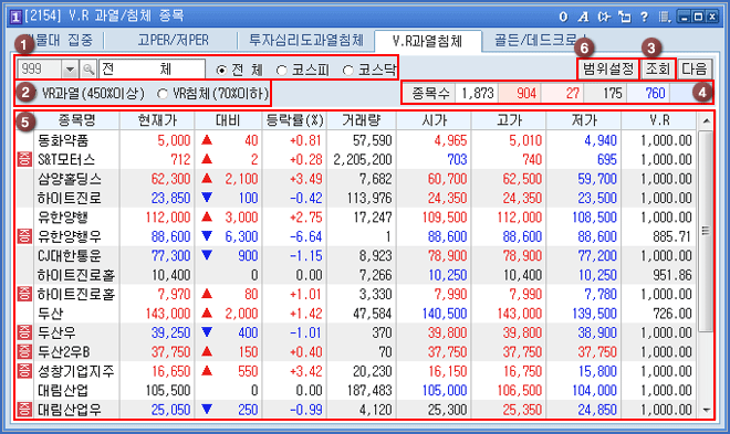 ¡®V.R °ú¿ (450% ÀÌ»ó) , V.R ħü (70% ÀÌÇÏ)¡¯ Áß Á¶È¸ÇÒ ±âÁØÀ» ¼±ÅÃÇÕ´Ï´Ù.