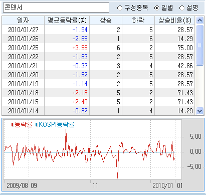 ÀϺ° : ¼±ÅÃÇÑ ¼½Å͸íÀÇ ÀÏÀÚº° ¡®Æò±Õµî¶ôÀ², »ó½Â, Ç϶ô, »ó½ÂºñÀ²¡¯ µîÀÇ µî¶ôÀ² ÇöȲÀ» ¼öÄ¡¿Í Â÷Æ®·Î Á¶È¸ÇÒ ¼ö ÀÖ½À´Ï´Ù.