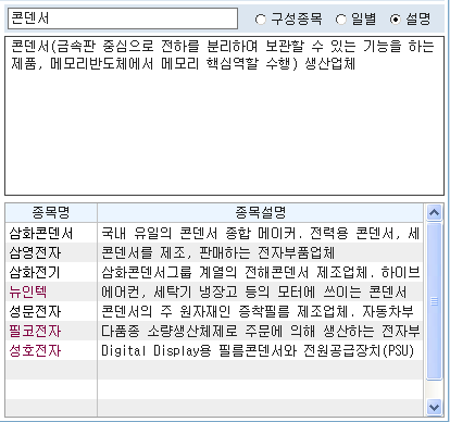 ±¸¼ºÁ¾¸ñ : ¿¡¼ ¼±ÅÃÇÑ ¼½Å͸íÀ» ±¸¼ºÇϰí ÀÖ´Â Á¾¸ñ ¸®½ºÆ®°¡ Á¶È¸µË´Ï´Ù.
