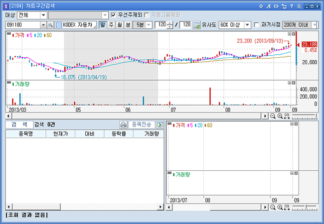 검색 : 찾고자 하는 추세패턴의 대상 및 설정 변경 후 검색버튼을 이용하여 재검색 할 때 사용합니다.