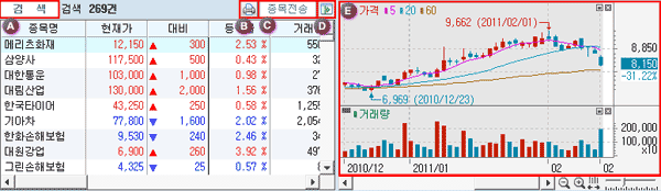 검색결과 차트 : 검색된 종목의 차트를 보여주는 화면입니다.